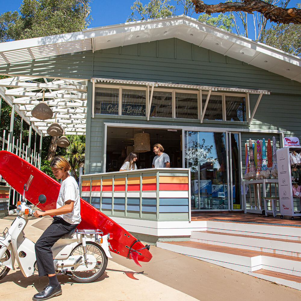 Please note, we cannot make bookings in advance. Golden Breed discounts do not apply to board hire rates and we do not deliver boards to your location. Come to the shop, feel the vibes and enjoy everything that Noosa has to offer. We're only footsteps away from world famous breaks.