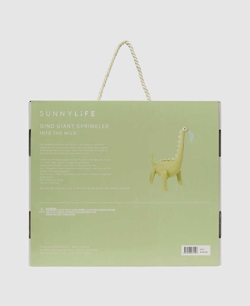 Sprinkle some fun for your little ones. The Into The Wild Dino Giant Sprinkler is designed to refresh hot summer days and provide hours of water filled playtime. Standing tall and proud at over 6 feet, this larger-than-life inflatable sprinkler is sure to be a hit with kids and adults alike. Simply attach to your garden hose and play beneath the sun shower of water spraying from its mouth.