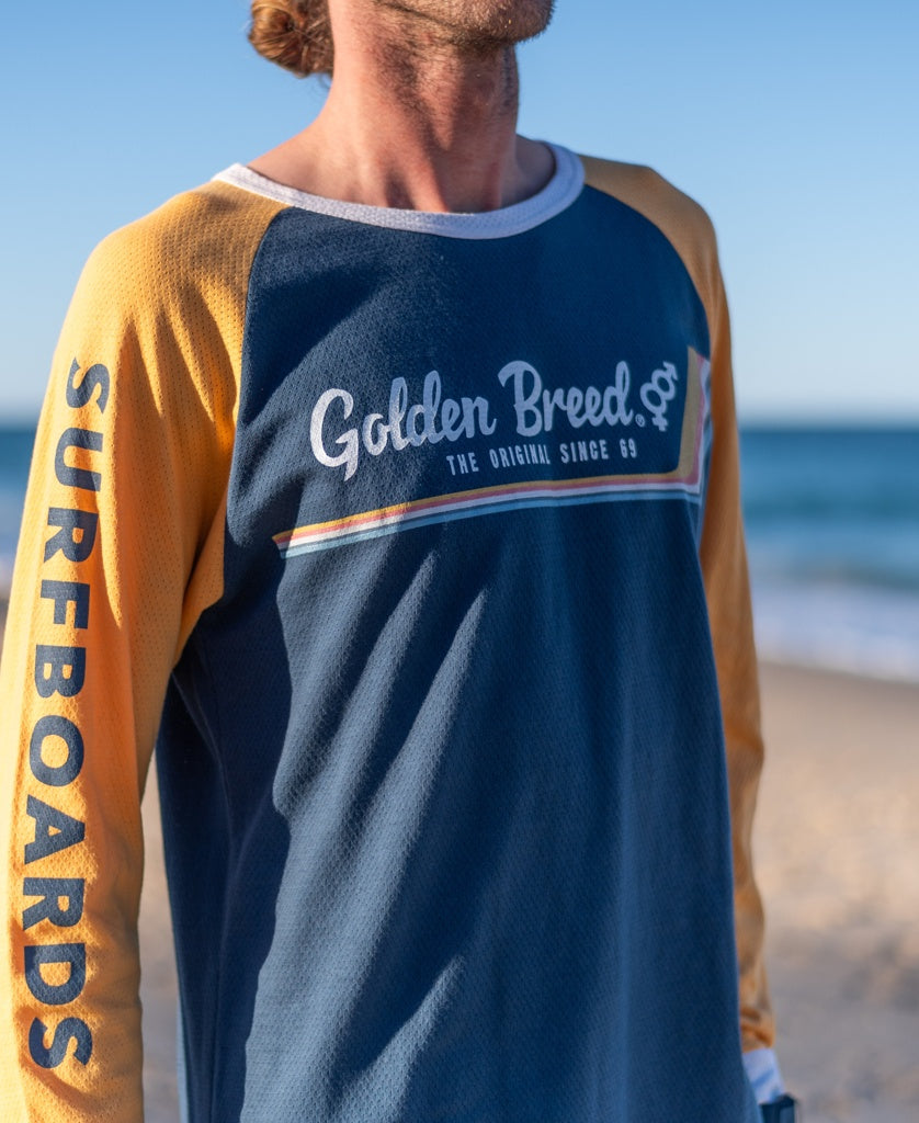 Golden Breed’s newest addition to its famous long sleeve collection, the Mesh Long Sleeve Raglan. Made from a super soft cotton mesh, this long sleeve is extremely comfortable and features a colour block design. Perfect post surf or just lounging around in!