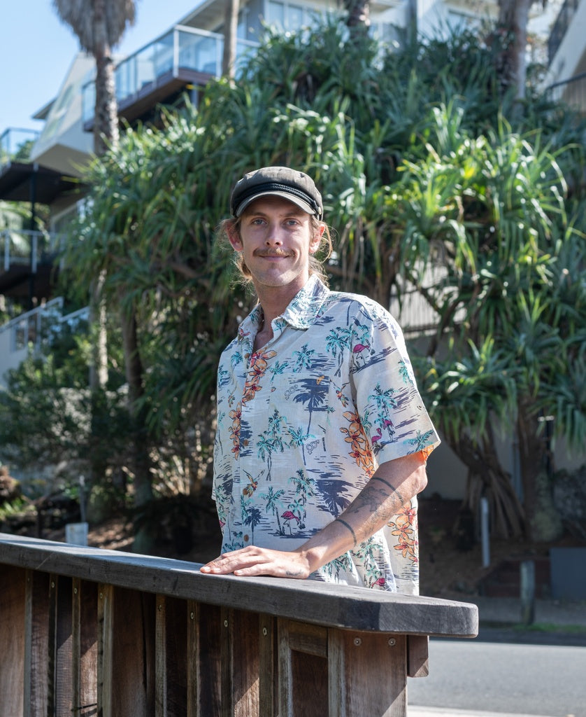 Introducing the Golden Breed Hawaiian Flamingos Shirt in Sage. Cool and Vibrant, this shirt incorporates the true spirit of surf culture and endless vacations.