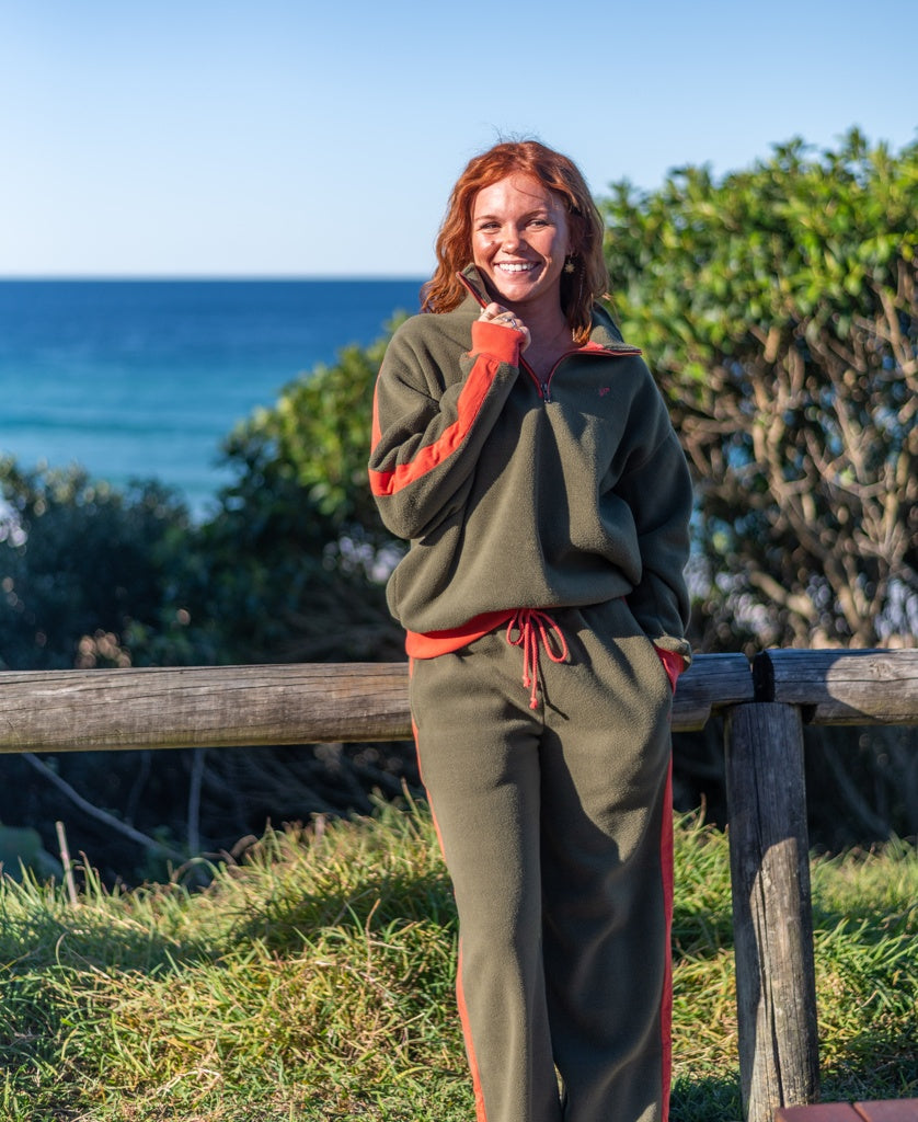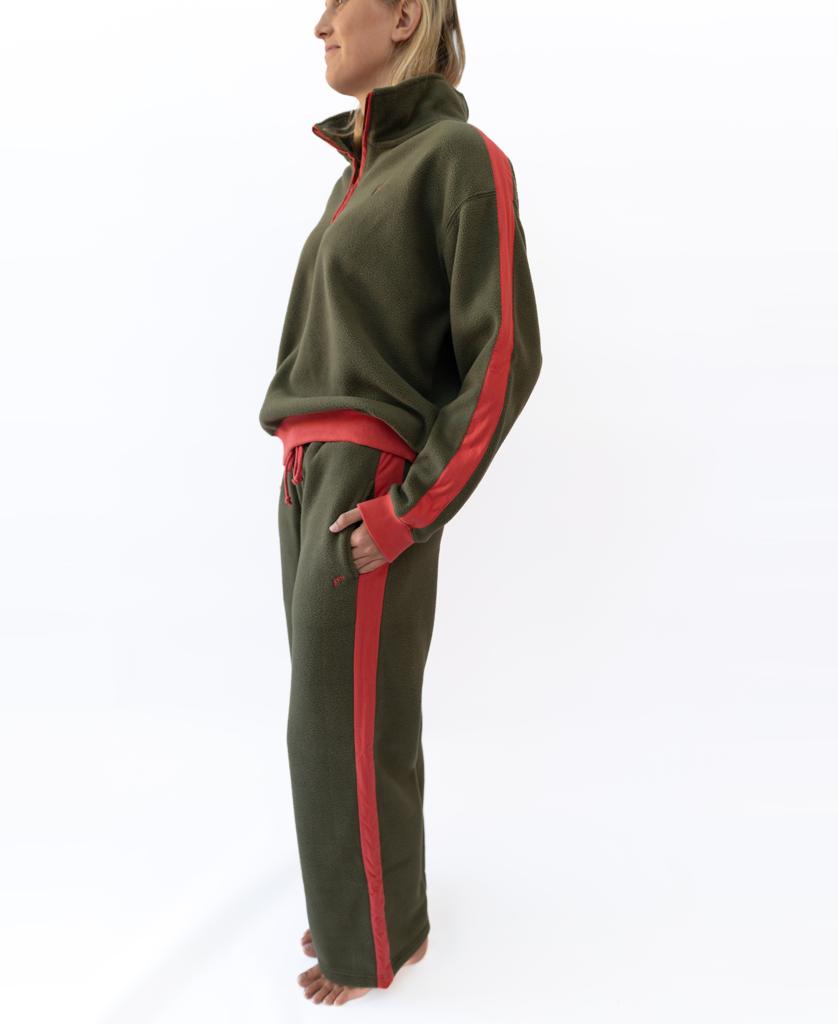 Peggy 1/2 Zip Retro | Dk Khaki/Red