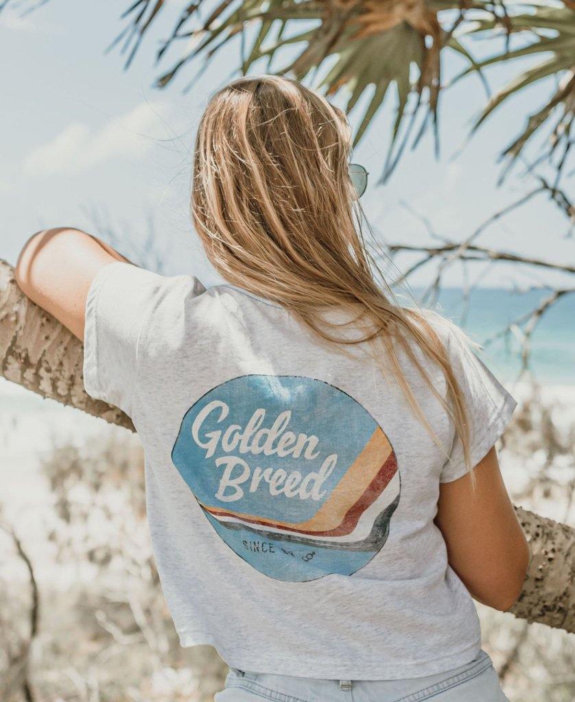 Cropped Tee with classic Golden Breed vintage print on back. Super comfortable made from 100% soft cotton.