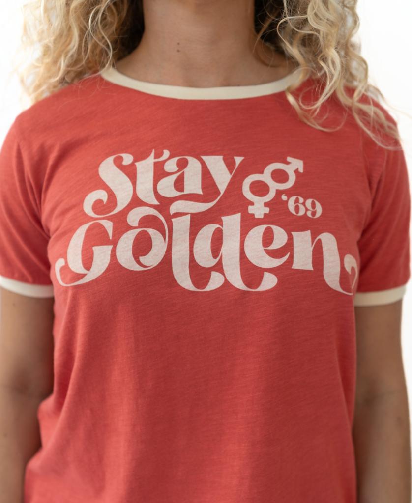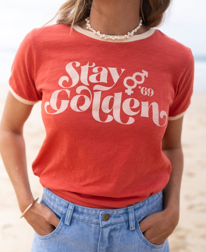 Ringer Tee in iconic retro Stay Golden print.