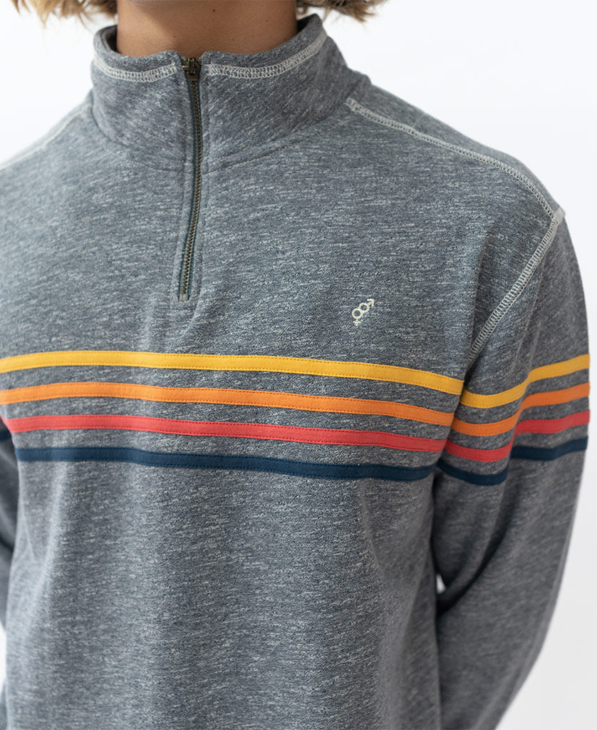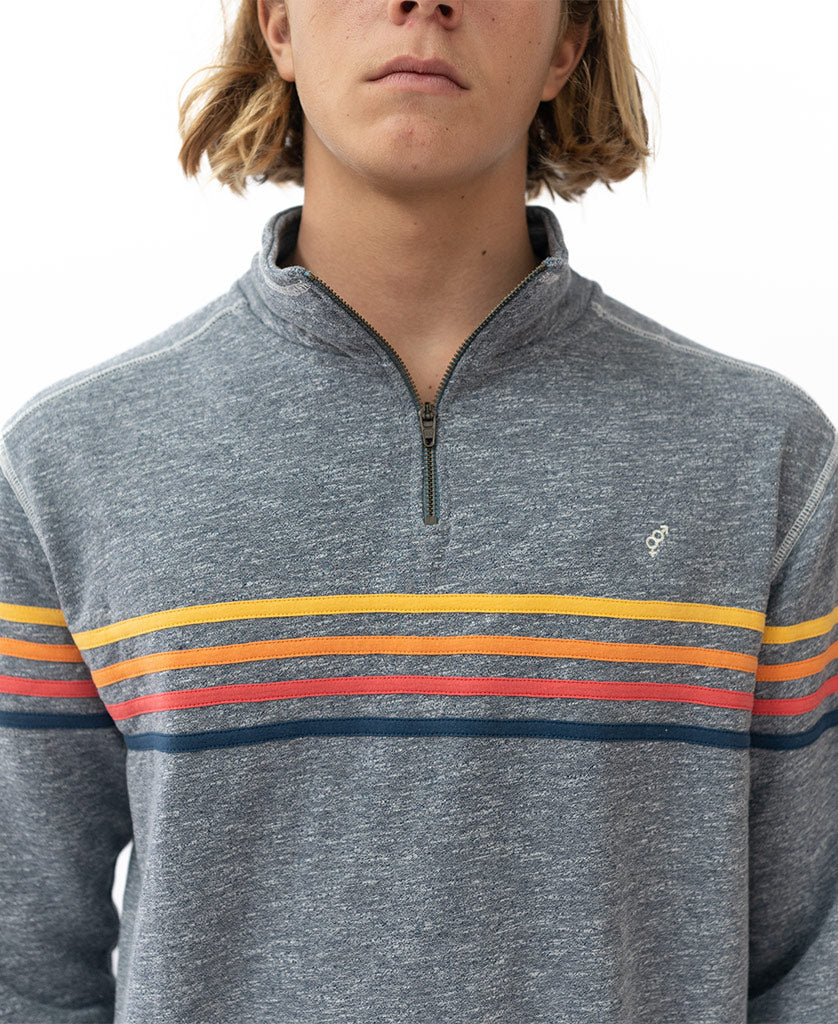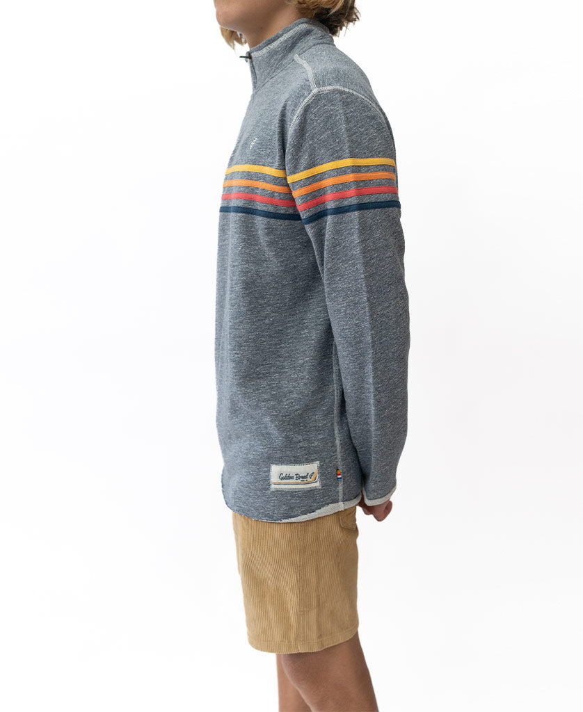 Golden Breed’s extremely popular ¼ Zip, combined with our Classic Rag Top. Inspired by the 60’s California surf vibe, this super soft and comfortable jumper features stripes across the front and sleeves, a zipper on the front neck and the GB logo embroidered in the top left corner. The perfect throw on post beach or even better just lounging around in.